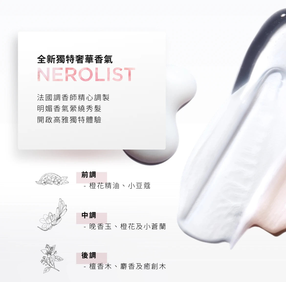 這款滋養護髮素可以滋潤、強化髮絲、保護顏色並防止褪色。強效輕盈的配方非常適合細髮至中等髮質,使頭髮更順滑,不會感覺沉重。